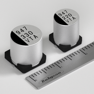 Rubycon is now adding φ8mm and φ10mm case size products to the 125℃ miniaturized, low ESR surface mount type TAV series (currently, only case size φ6.3mm is released).