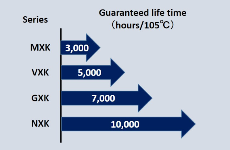 建立了从85℃到125℃的产品体系,另外105℃也细分了不同寿命系列,为客户产品的小型化和低成本化贡献力量。