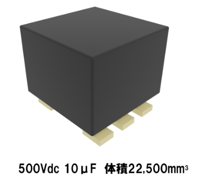 「MU」シリーズをメインとして、現在更なる高圧/モジュール化を開発中で、車載インバータ用のフィルムコンの大幅な小型化が実現できます。