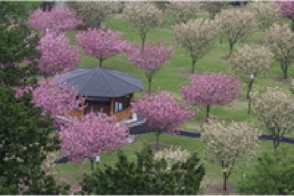 - 構内にある公園には、秋田県由利本荘市から運ばれた黄桜を中心に、赤牡丹桜、しだれ桜が100 本以上植えられています。地域の皆さんにも公開しており、憩いの場となっています。